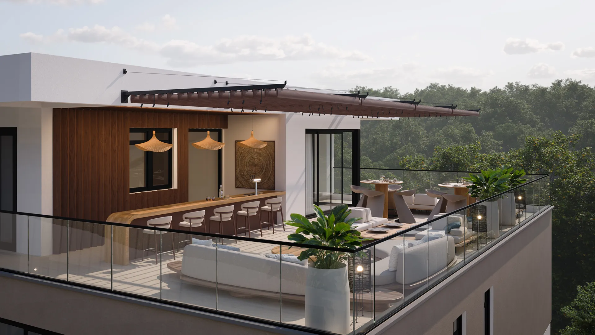 An elevated outdoor space designed for both entertaining and downtime, with open views and complete privacy above it all.